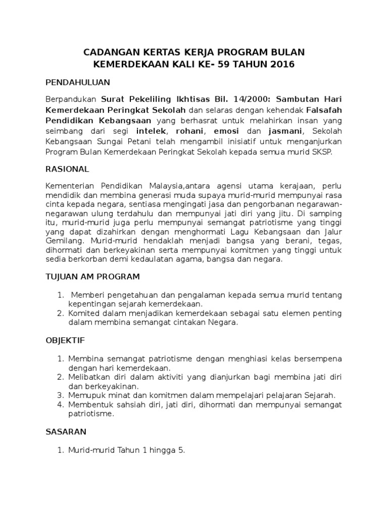 Kertas Kerja Bulan Kemerdekaan Ssaz Pdf