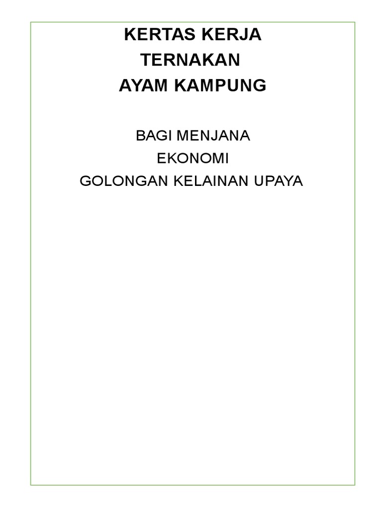 Kertas Kerja Penternakan Ayam Kampung Pdf
