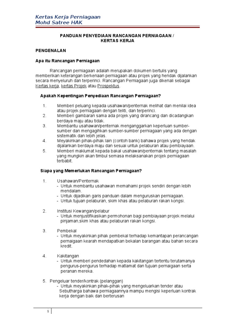 Sila tnjuk ajar sy nya. Muka surat kandungan perlu menyenaraikan bahagian-bahagian utama dalam rancangan Perniagaan dan senarai lampiran serta bilangan muka surat yang berkaitan 3. Apakah jenis perniagaan yang harus anda jalankan.