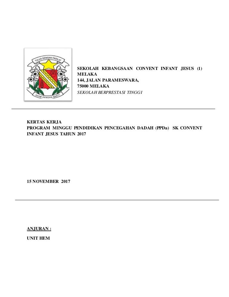 Pertandingan melukis poster dan tahap 1 2 mewarna 13 730 am cuma 5 minit. UNIT PENDIDIKAN PENCEGAHAN DADAH SK MERU 2 TARIKH. SEKOLAH KEBANGSAAN CONVENT INFANT JESUS 1 MELAKA 144 JALAN PARAMESWARA 75000 MELAKA SEKOLAH BERPRESTASI TINGGI KERTAS KERJA PROGRAM MINGGU PENDIDIKAN PENCEGAHAN DADAH PPDa SK CONVENT INFANT JESUS TAHUN 2017 15 NOVEMBER 2017 ANJURAN.