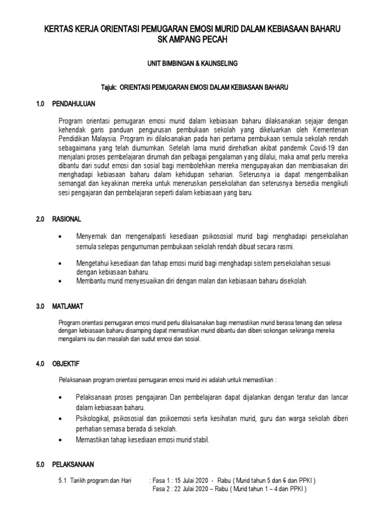 Kertas Kerja Orientasi Pemugaran Emosi 2020 Pdf