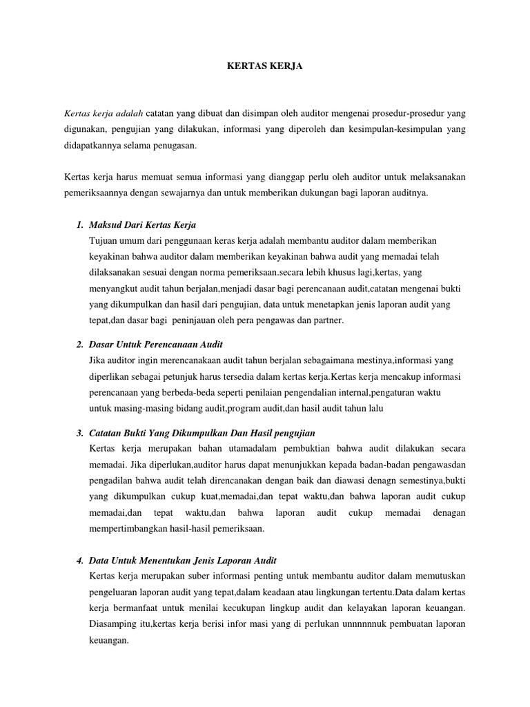 Download as PPTX PDF TXT or read online from Scribd. Data kertas kerja dapat disimpan dalam pita magetik film atau media yang lain. Kertas kerja audit audit work paper sangat membantu auditor dalam melakukan pekerjaannya.