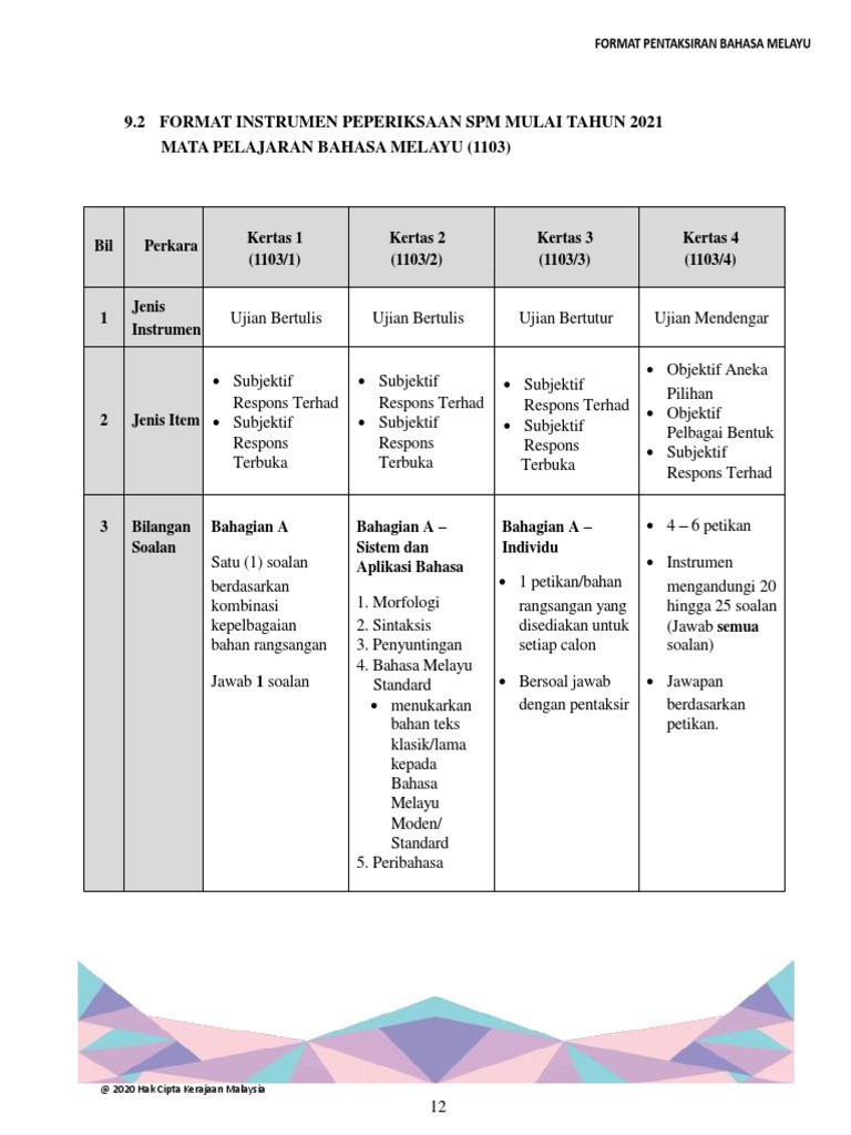 Format Baharu Instrumen Peperiksaan Spm 2021