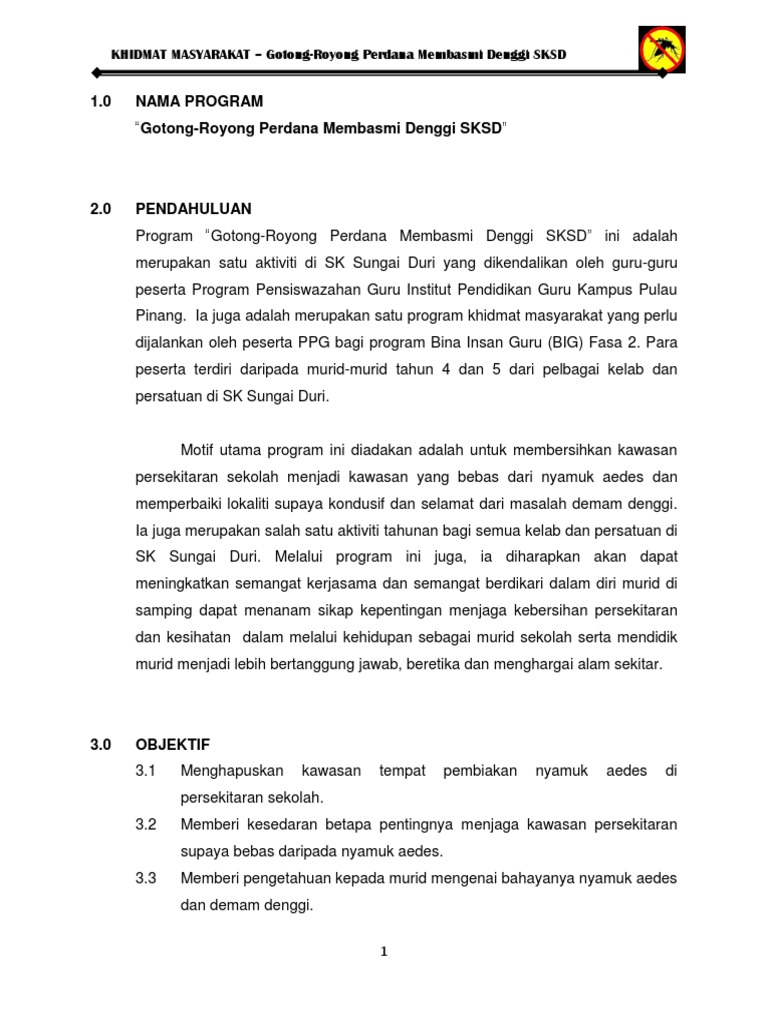 Program Khidmat Masyarakat. SEKOLAH KEBANGSAAN PENGHULU AHMAD KEDAH DARUL AMAN KERTAS KERJA PROGRAM ALAM SEKITAR UDARA BERSIH HIDUP SIHAT TARIKH 11 13 MAC 2017 TEMPAT SK PENGHULU AHMAD DISEDIAKAN OLEH FATIN SYAZWANI BINTI SHANI ANJURAN PERSATUAN ALAM SEKITAR SK PENGHULU AHMAD PROGRAM ALAM SEKITAR Page 1 ISI KANDUNGAN 10 KERTAS KERJA. Sy mohon copy ye.