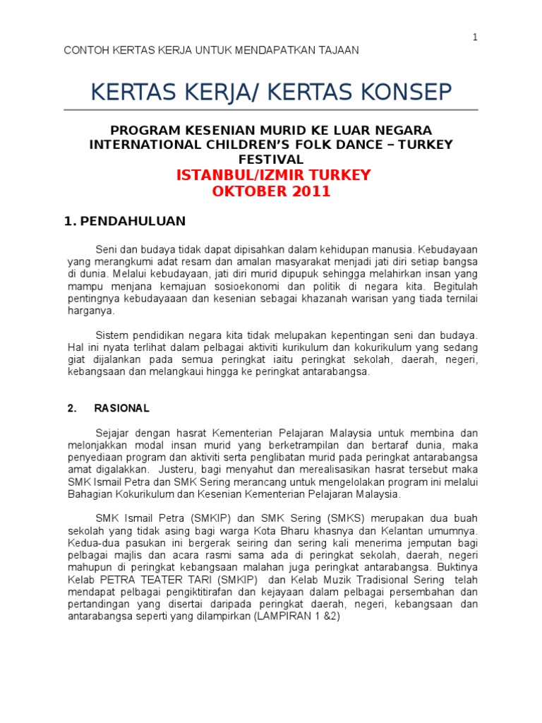 Contoh serta format kertas kerja seminar adalah seperti berikut. Kementerian Pelajaran Malaysia telah memperkenalkan Program NILAM di peringkat sekolah rendah dan sekolah menengah. 83 Contoh Kertas Kerja Program Sekolah.