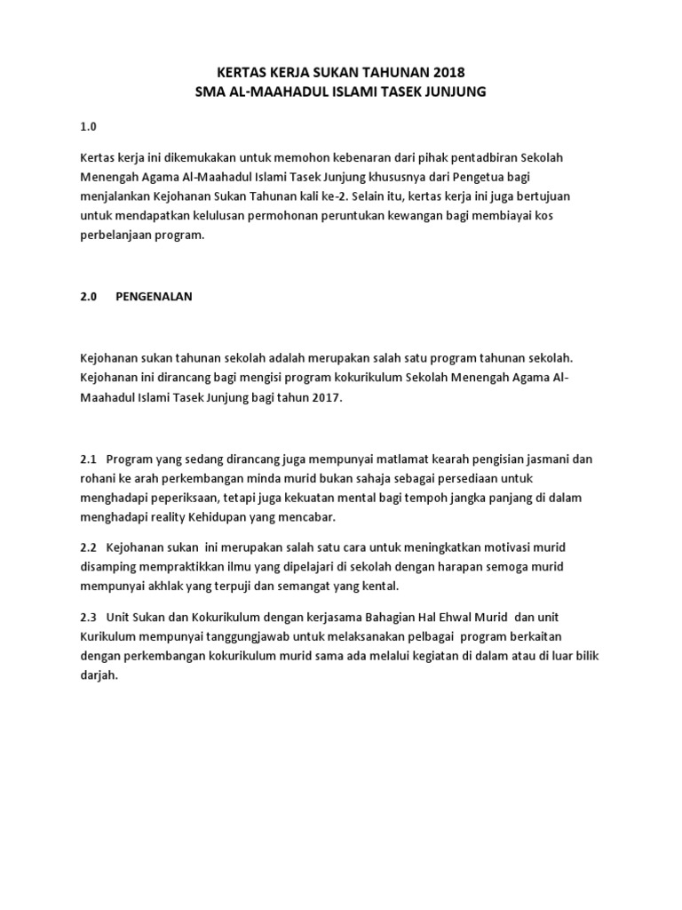 Contoh Kertas Kerja Sukan Tahunan 2017 Pdf